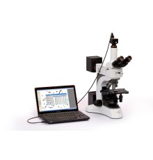 Двойные объективы справа и слева от ячейки с образцом, эффективное фокусное расстояние 223 мм